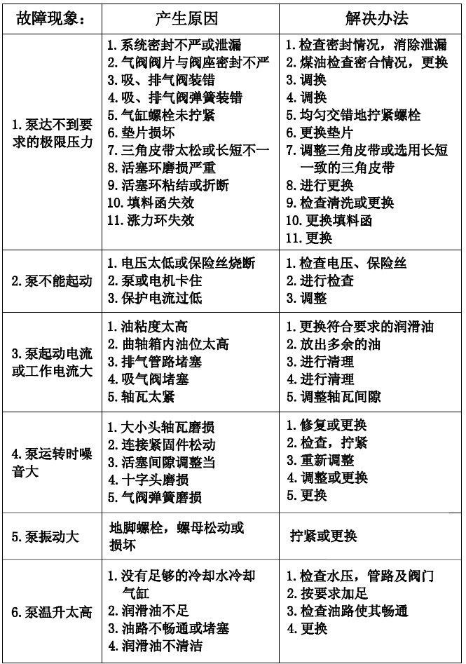 立式無油真空泵故障排除